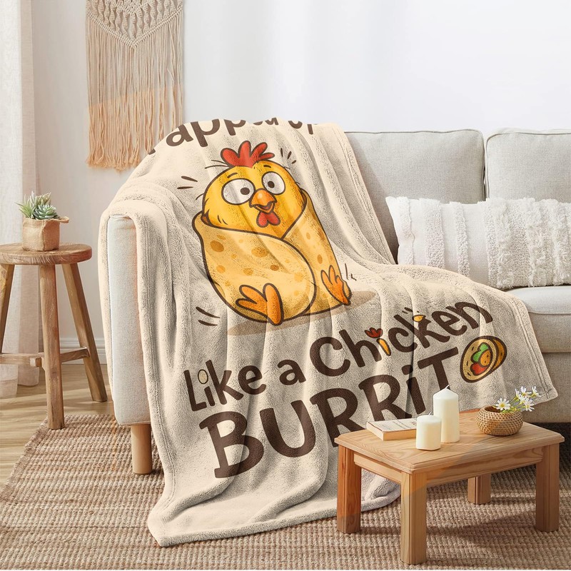 Wrapped Up Like a Chicken Burrito Flannel Throw Blanket 60 x 50 Inches - Funny Chicken Burrito Cartoon, Soft Lightweight Cozy Couch Bed Sofa Lap, for Adults and Kids