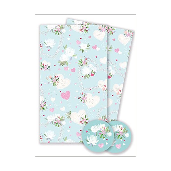 Wrapping Paper 11365A "Love Heart & Flowers" Gift Wrap Pack with 2 Sheets & 2 Tags, Plastic free & FULLY RECYCLABLE, multicoloured
