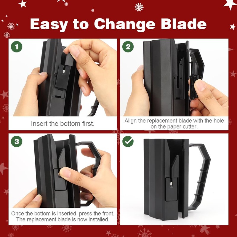 • Package Contents: You will receive a wrapping paper cutter and three replacement blades. This set can help you cut to the required size easily and quickly, and it is very simple and efficient to use. Suitable for any wrapping paper roll, ready for your upcoming Christmas decoration needs.