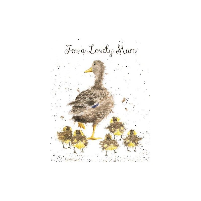 Perfect for any occasion, this card features a mother duck with her ducklings and reads 'For a lovely Mum'. The card is printed on beautiful textured board sourced from the Lake District and is supplied wrapped, with a kraft recycled envelope. It measures 170mm x 138mm.