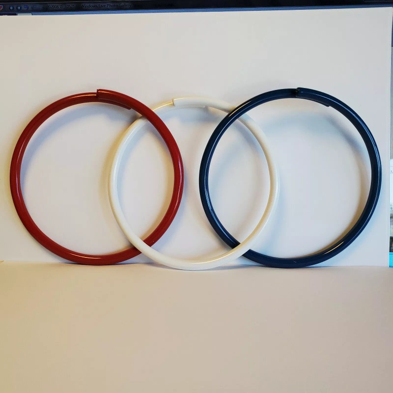 The ring is an organizer for box end wrenches. Wrench-rings hold wrench sizes 3/8” (10mm) and up. The perfect gift for plumbers, fabricators, electricians, farmers, and any other professional worker that works out in the field. Package contains one of each color, red, white, and blue. Wrench rings are color coded to give you quick access to the type of wrench you need. The red ring is for standard boxed end wrenches. The blue ring is for metric boxed end wrenches. The white ring is for adjustable and pipe wrenches. When your wrenches are kept together, you will save time by not searching for your wrenches. Use our heavy-duty ring to organize other items as well. Rings are sold individuals and different sizes as well, go to (about seller) for more options. WRENCHES NOT INCLUDED.