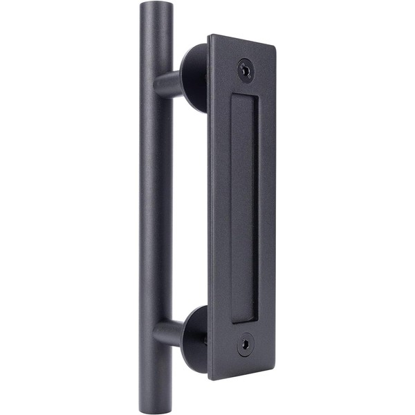 Wright Products Barn Door Pull and Flush Mounted Handle Set - Matte Black Interior Door Handle Set for Interior Barn Doors - Includes Hardware, 1 Pack