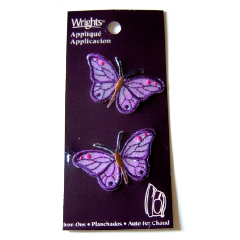 Wright's Butterfly Purple Iridescent 1 1/4" x 2" Iron On Applique Pair wp-12