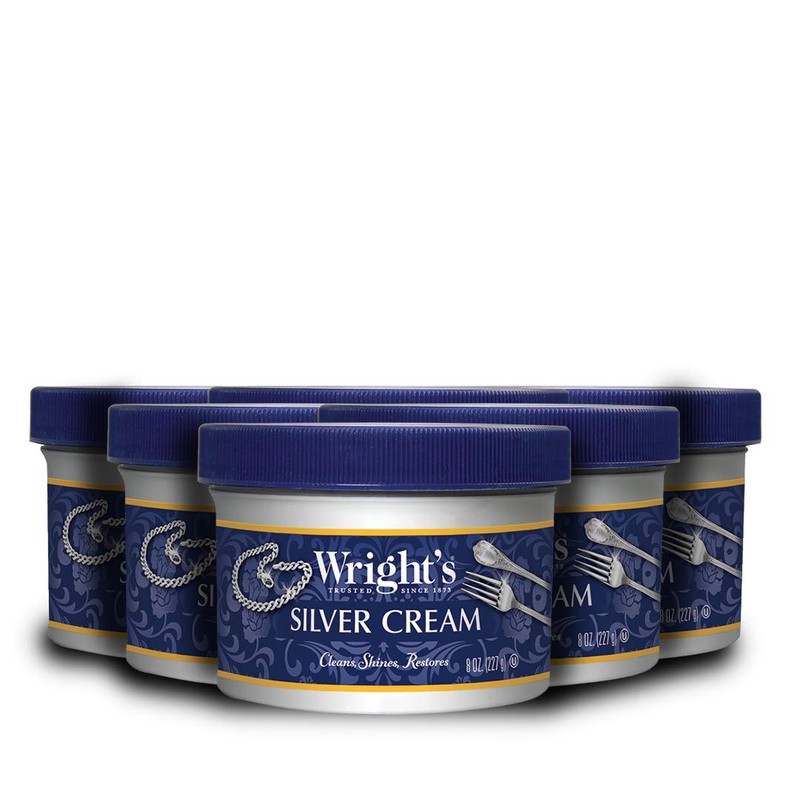 Wright's Silver Cleaner and Polish Cream - 6 Pack - 8 Ounce - Ammonia-Free - Gently Clean and Remove Tarnish Without Scratching
