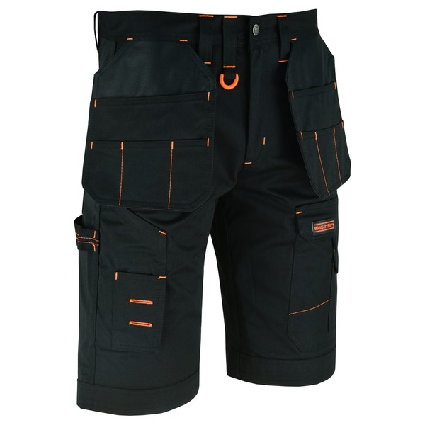 WrightFits Men Holster Work Shorts - Heavy Duty Safety Combat Cargo Summer Shorts - Multi Pockets - Triple Stitched - Durable Workwear Black 32 W
