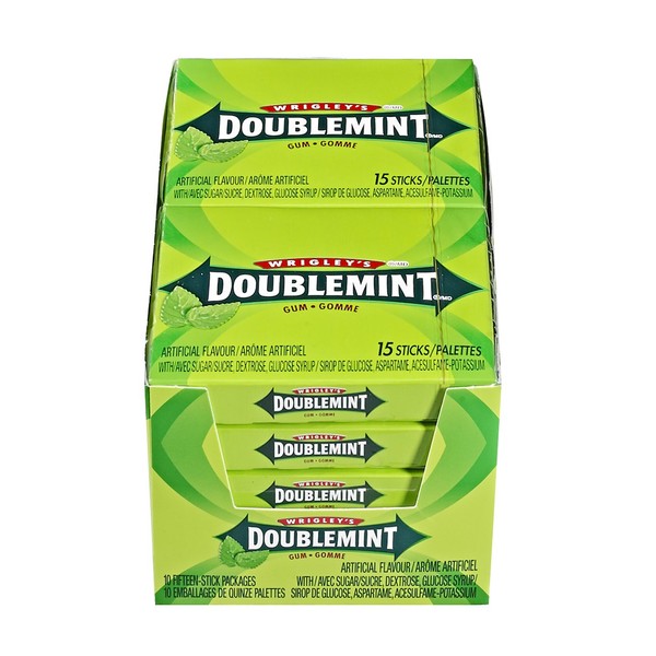 - 10 Packs, each includes 15 Sticks of Wrigley's Doublemint Chewing Gum in a single pack.