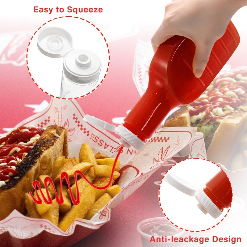 - Sufficient Quantity: Include 16 pack plastic squeeze bottles, ample enough to hold various condiments and meet replacement needs. 8"H x 4.1"W in bottle size, 1.5"D in caliber, 16 Oz proper capacity allows you dispense as many sauces as you need.