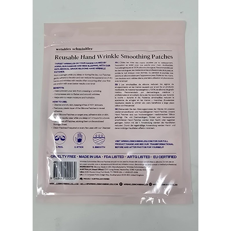 Soft, flexible, and easy to use, each patch adheres comfortably to the skin and can be worn overnight or for a few hours during the day. With consistent use, your hands appear softer, smoother, and more youthful-looking.