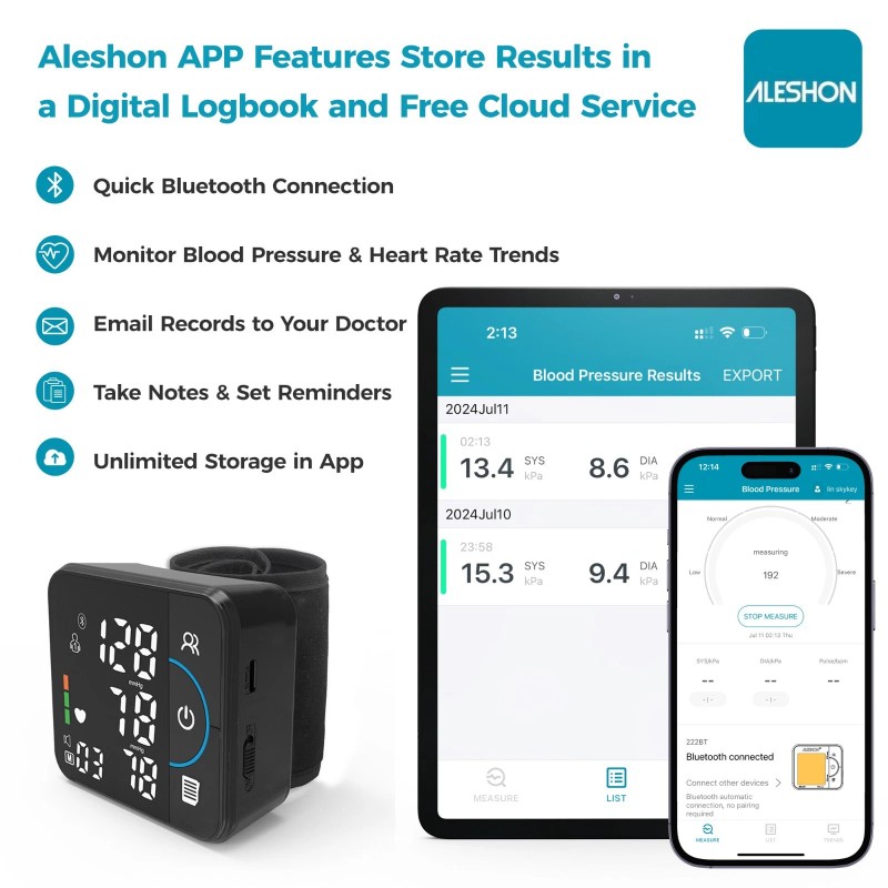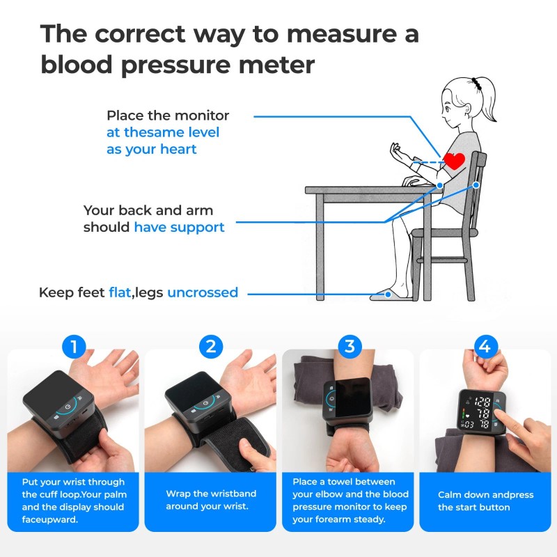Wrist Blood Pressure Monitor Automatic BP Machine Digital Cuff Heart Rate LCD