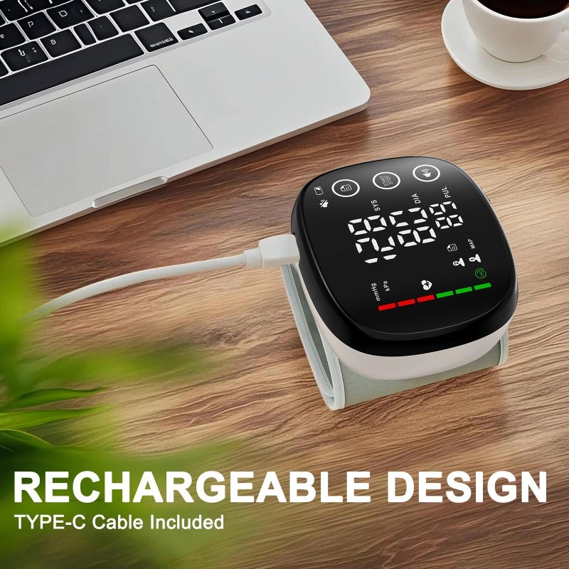 Wrist Blood Pressure Monitor with Touchscreen, 13.5–19.5cm Cuff 2×120 Memory