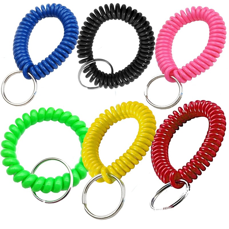 Wrist Coil Keychain, 6 Pack Coil Wrist Keychains, Colorful Spring Keychains for Swimming, Sauna, Gym (Blue, Yellow, Green, Pink, Red, Black)