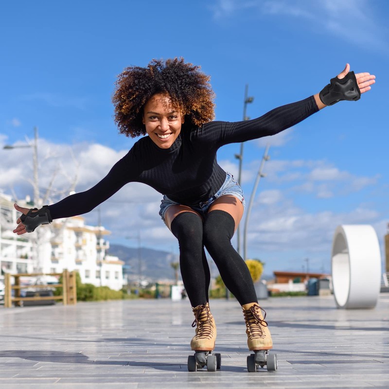- ✪Professional and Comfortable: adults/kids wrist guards wrist pads velcro closure strap used adjustable elastic fastening Tape for secure fit for various wrist/palm girths. The thickening design will be good protection during sport,The wrist brace designed with ABS plastic bone shell has a strong anti-skid and anti-scratch effect,soft EVA knee pads material with is comfortable and durable