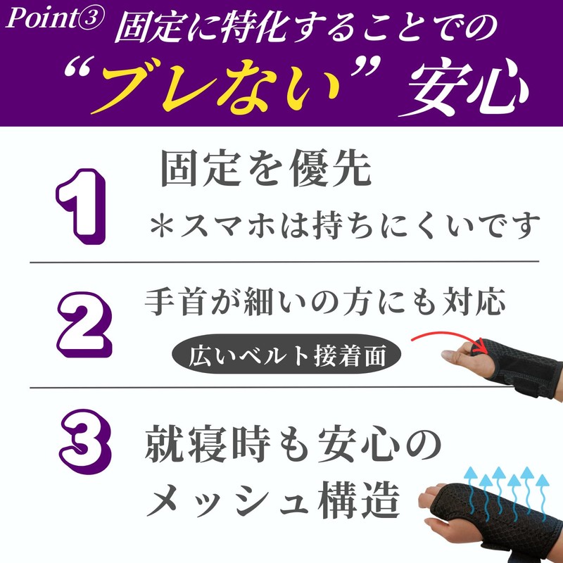 • (Hard type that can be firmly secured) Provides reliable support for situations where you want to restrict movement of your wrist. For relieving overuse and discomfort