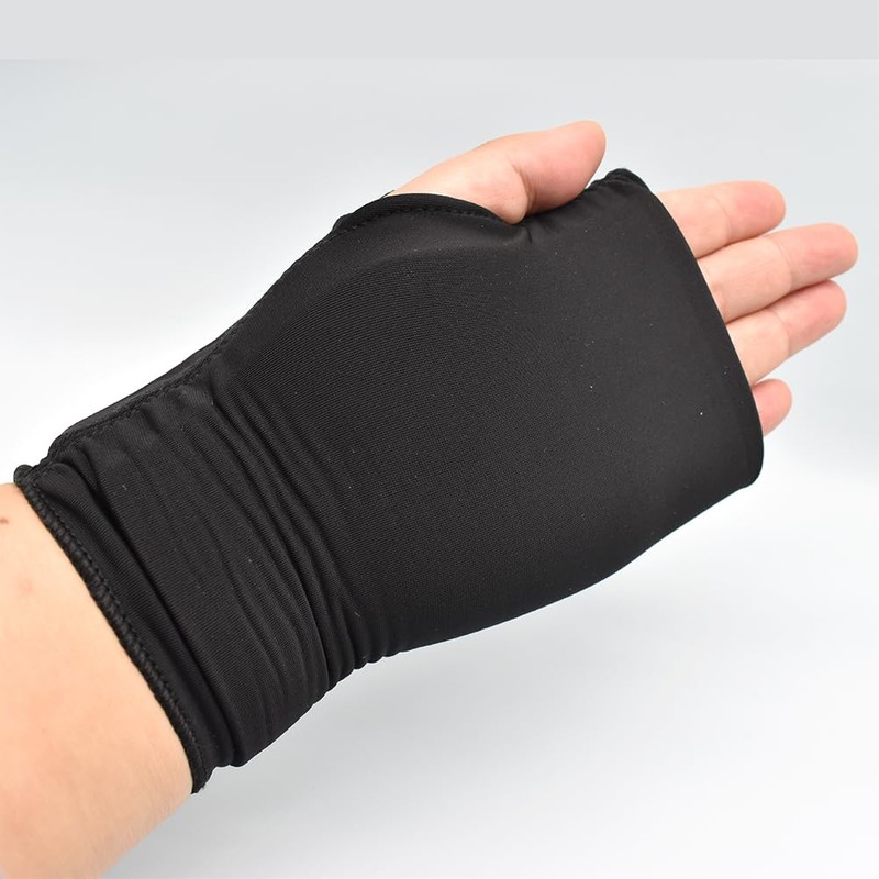 - ONE SIZE fits most -- Using a hot or cold compress is a natural and effective way to fight inflammation and to promote faster recovery. The soft, thick material fits the contour of my hand. This glove fits snugly and works well to relieve pain.