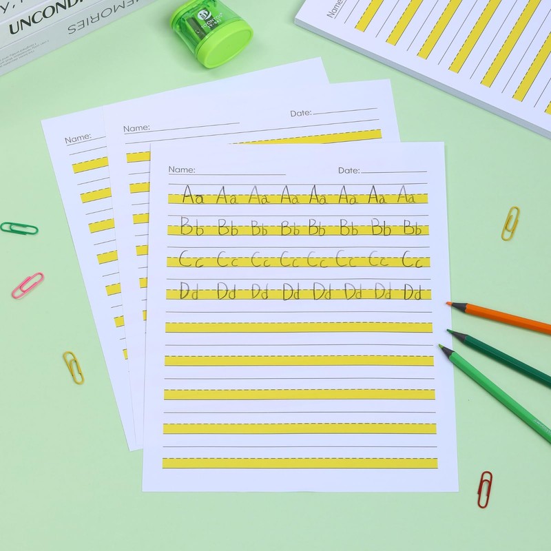 - đź“–Highlighted Writing Paper Sheets: Yellow highlighted baseline help with correcting letter placement and alignment: differentiation between upper and lowercase letters and avoid writing content not on the same level.These logical composition sheets decrease resistance to writing - making writing more fun.