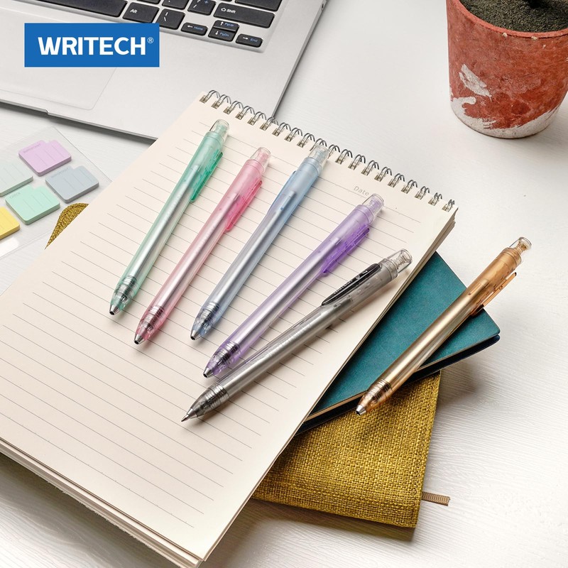 WRITECH Twist Gel Ink Pens: Multicolor Medium Point 0.7mm 6ct Low Center of Gravity Rotatable Pen No Smear Silent Click Space Up Gel Galaxy