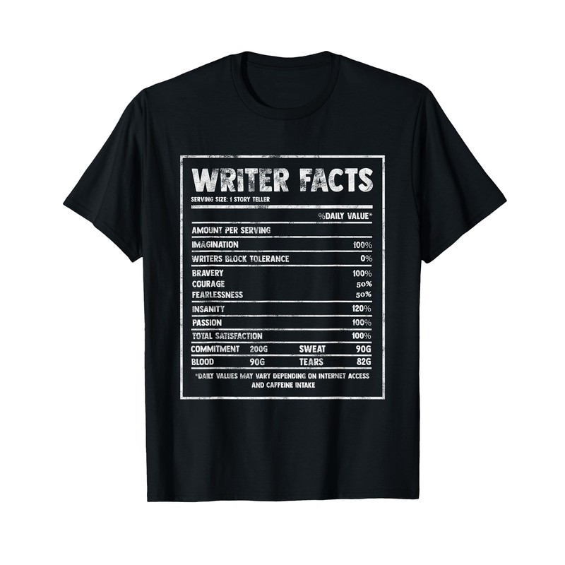 Writer Nutrition Facts Famous Novel Author Graphic Fun Gift T-Shirt
