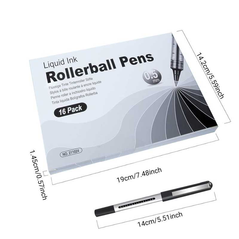 - High quality-price ratio: 16pcs black rollerball pen set with extra large ink cartridges for longer writing time, each pen is capable of writing 1500m, which is 3 times longer than ordinary ballpoint pens. Each set of 16 pens is enough to use for a long time, avoiding the hassle of frequent refill changes at school or in the office.