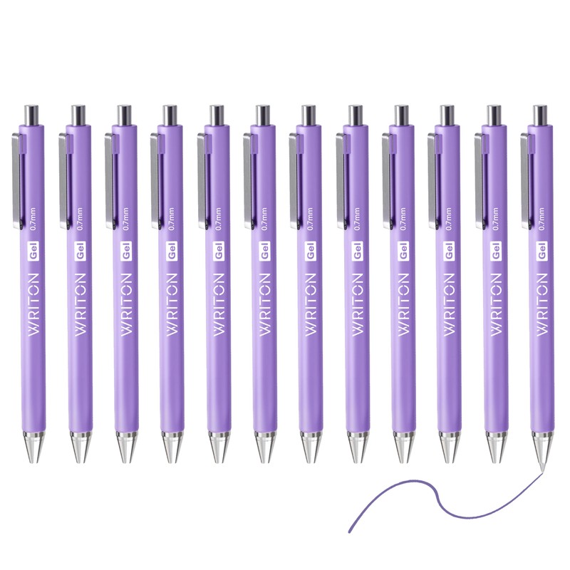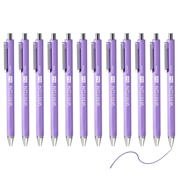 Writon Retractable Gel Pens, Comfort Barrel, 0.7mm Fine Point, Purple Ink, 12 Pack