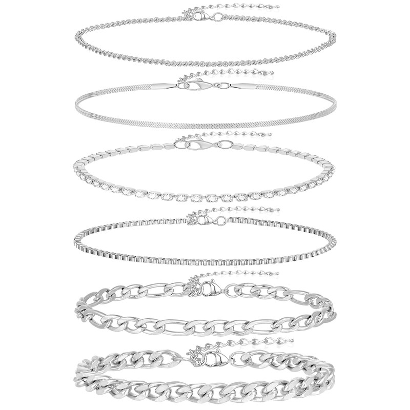 - Ankle Bracelets Set:You can Get 6Pcs Different Styles of Ankle Bracelets, Including Tennis Chain, Box Chain, Figaro Chain, Herringbone Chain,2 Cuban Link Chain(Cuban+ Rolo).Various Styles can Give you Multiple Choices to Wear in the Daily Life