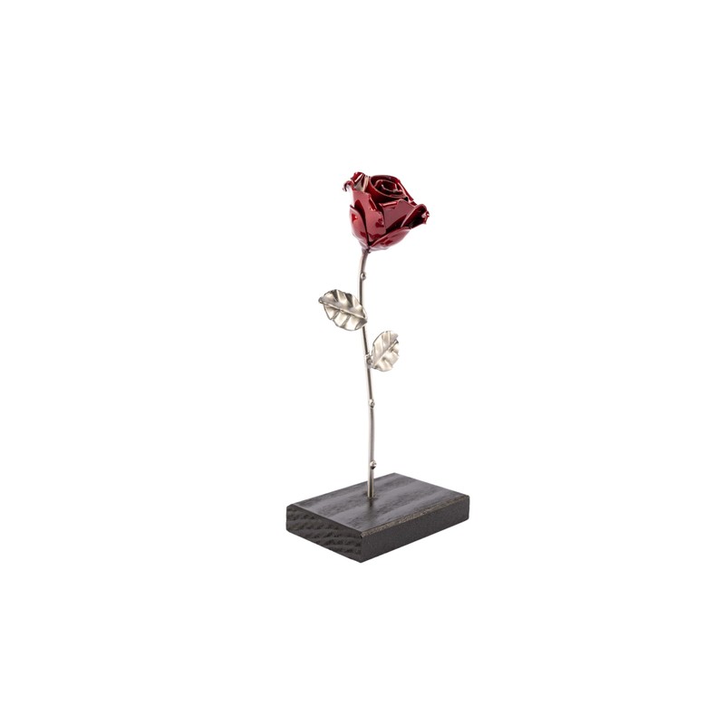 Wrought Iron Eternal Rose with Base - Hand Forged (Red/Silver)