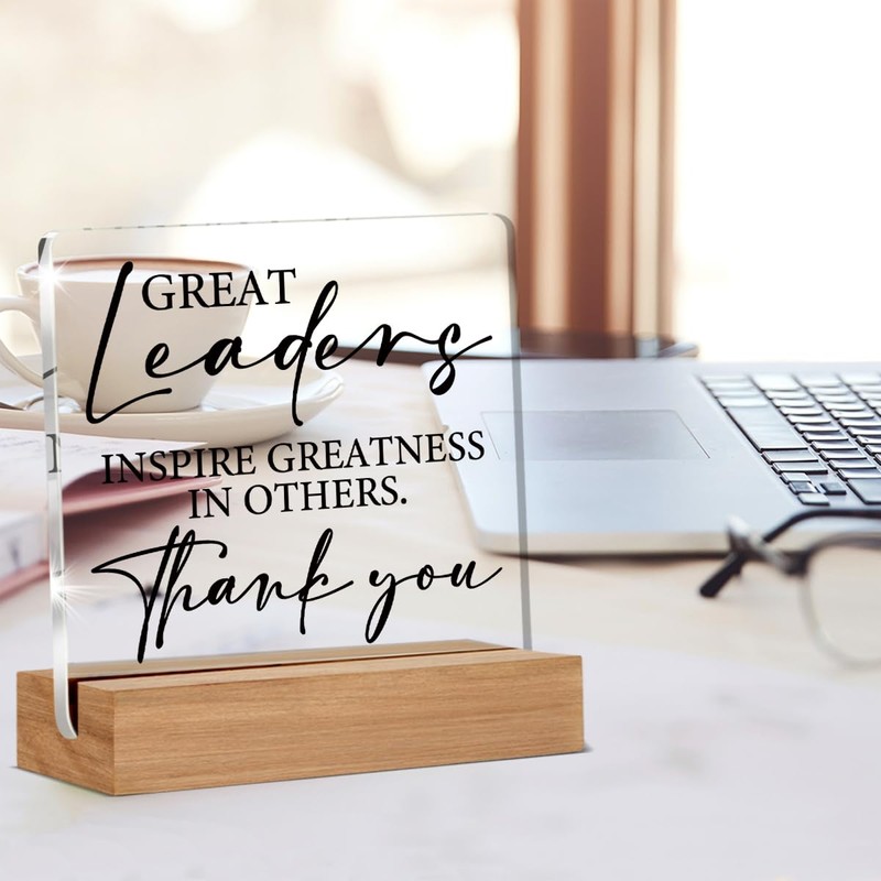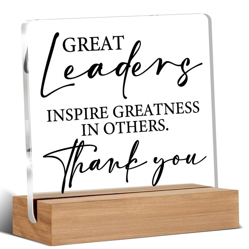 Wrpdrim Thank You Gifts for Boss Leaders Supervisor Principal, Leader Gift for Men Women, Appreciation Acrylic Office Home Signs Decorations 4 x 4 Inches