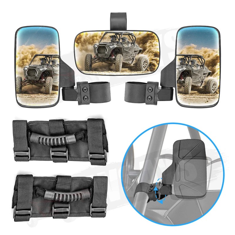 - Package include:: 2x Grab Handles,Pair Side View Mirrors&Rear Mirror