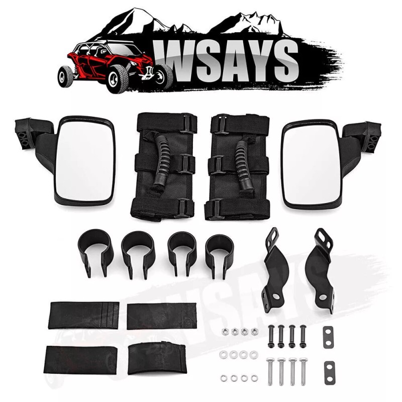 WSAYS UTV Rear View Center Side Mirrors Grab Handles For Polaris General 1000 4 16-24