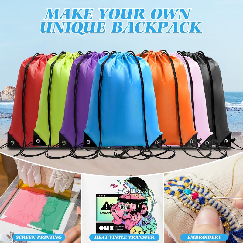 - Customizable for Personal Touch: Drawstring backpack's surface is ideal for various DIY customization projects. Whether you prefer screen printing, heat vinyl transfer, or embroidery, you can personalize the bag with your own designs, logos, or artwork. This allows you to create a unique and personalized accessory that reflects your individual style