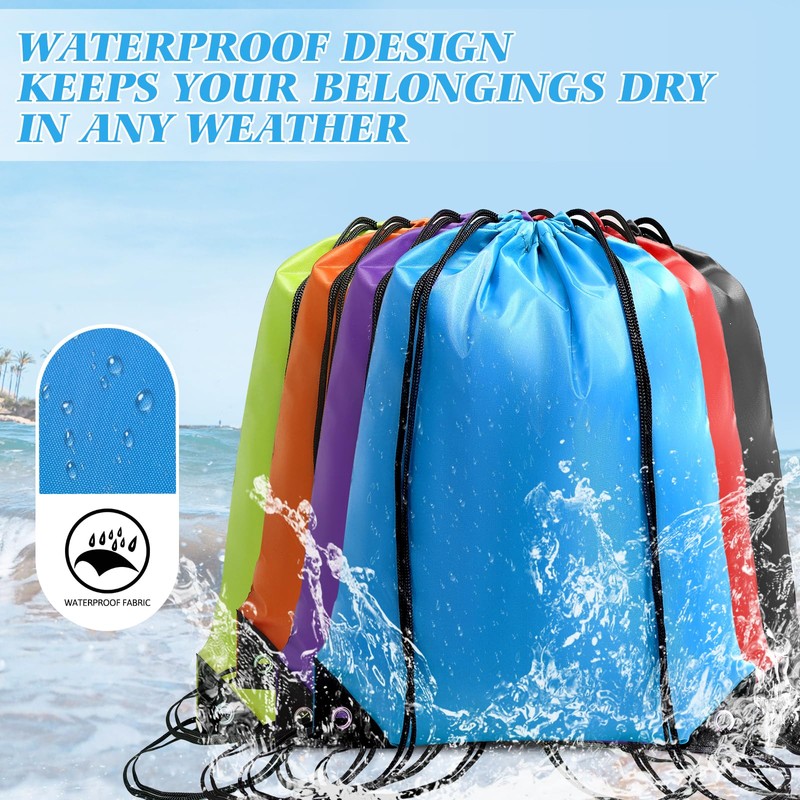 - Waterproof Material: Crafted from polyester,waterproof drawstring backpack is waterproof, ensuring that your belongings stay dry and protected even in rainy or wet conditions. This feature makes it an ideal choice for outdoor activities, gym sessions, and travel