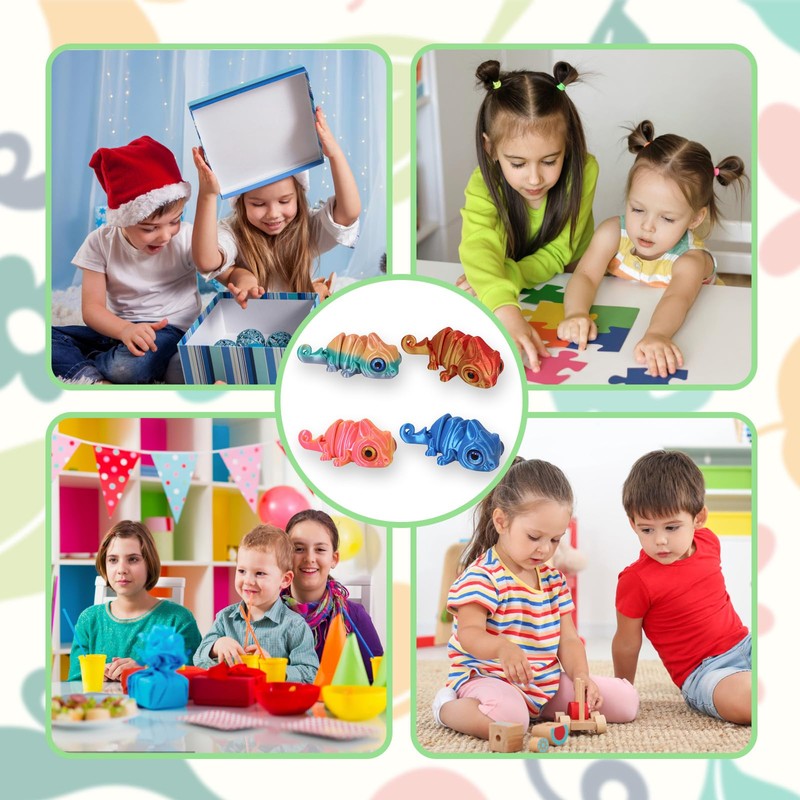 - Unique 3D printed lizard set: Includes four distinct chameleons, each measuring 6.5*3.5*2.6cm; these 3D printed lizards showcase vibrant colors and intricate details, making them perfect for kids who love unique and creative toys; 3D printed toys is ideal for educational purposes and imaginative play.