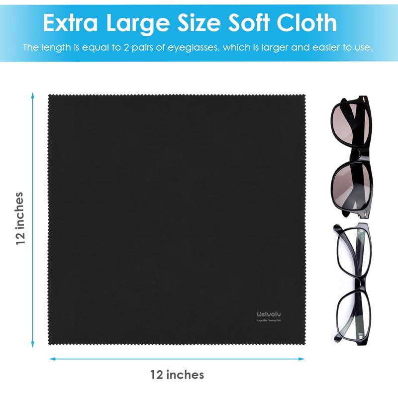 - LARGE SIZE COME WITH 6PCS: Wsivoiv large eyeglass cleaning cloth are 12 x12 inches come with 6pcs (including black x3pcs, gray x3pcs) . They are larger than the usual, and make it easier to grip when wiping, fairly big and nice.
