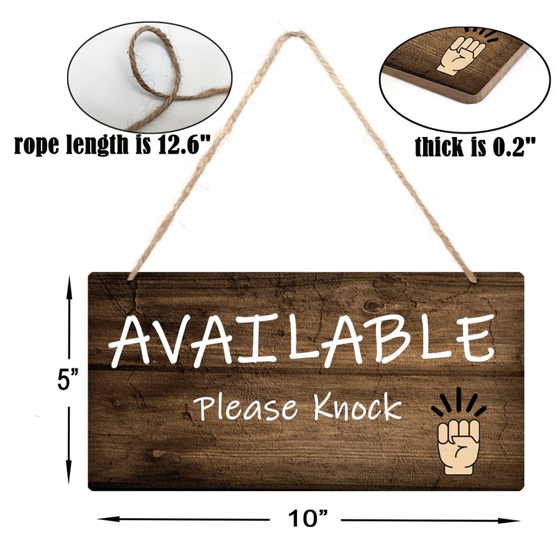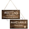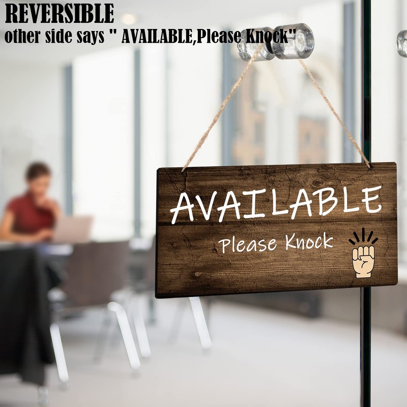 • 【Reversible Wooden Sign】- Original unique design, rustic style, looks simple, but it is double-sided and dual usage. One side says"Meeting in progress, Do not disturb"and the other side says " Available, Please Knock". Hang it up and convey your meeting status clearly.