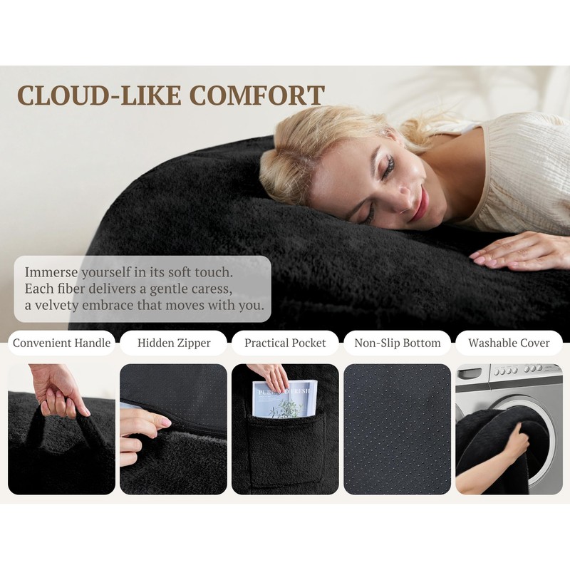 - Rich in Detail: The convenient handle allows for easy movement of the giant bean bag chair, enabling you to reposition it freely and lean back in any corner. The practical pocket securely holds your phone, tablet, magazines, and more—simply place them inside for hassle-free storage. The hidden zipper facilitates removal of the bean bag sofa cover while maintaining an elegant appearance. The non-slip base effectively prevents shifting, ensuring lasting stability.