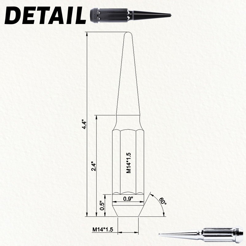 - Note - 24PCS spiked lug nuts with 1PCS socket key for AFTERMARKET WHEELS ONLY with M14x1.5 thread.