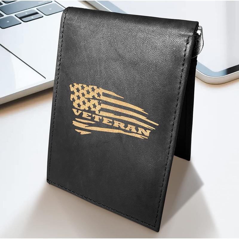 WSQ US Veteran Flag Leather Laser Engraved Minimalist Slim Money Clip Black RFID Blocking Front Pocket Credit Card Holder Oraganizer Mens Wallets ASUNIT17