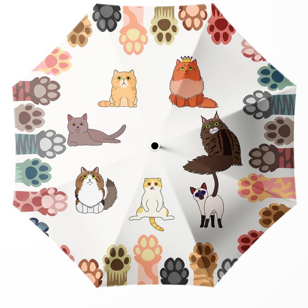 WSZYNDF Kawaii Cute Cat Small Travel Automatic Folding Umbrella for Girl and Women, Rain and Wind, Portable Compact UV Sun Shade