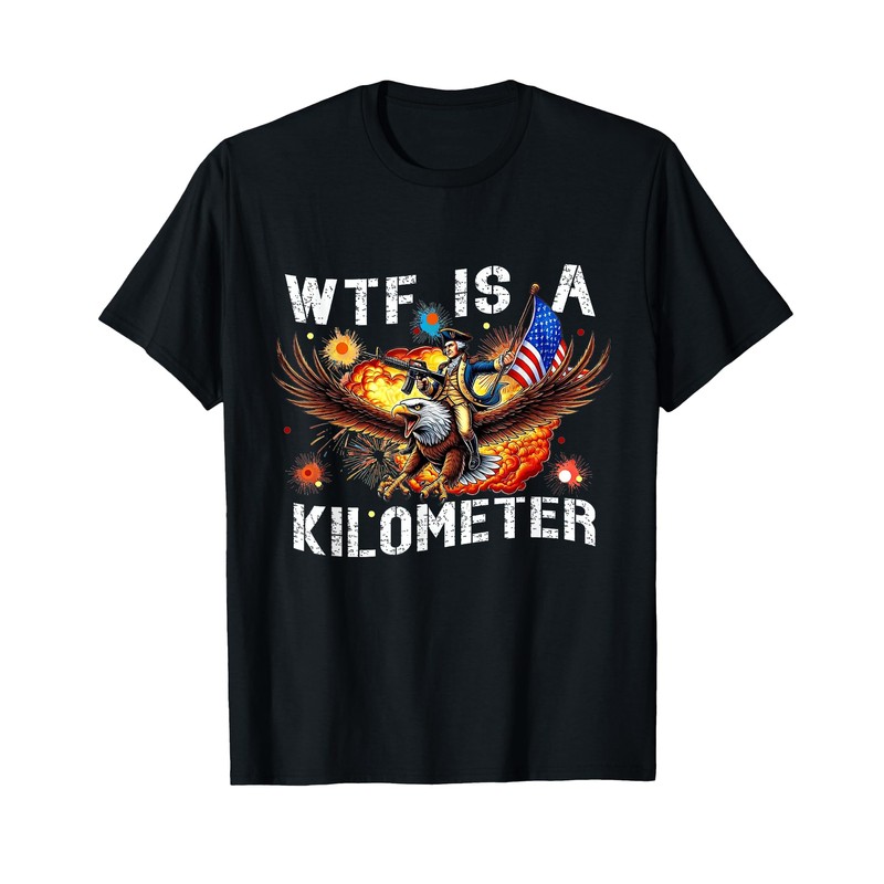 WTF Is A Kilometer Funny George Washington Riding Eagle T-Shirt