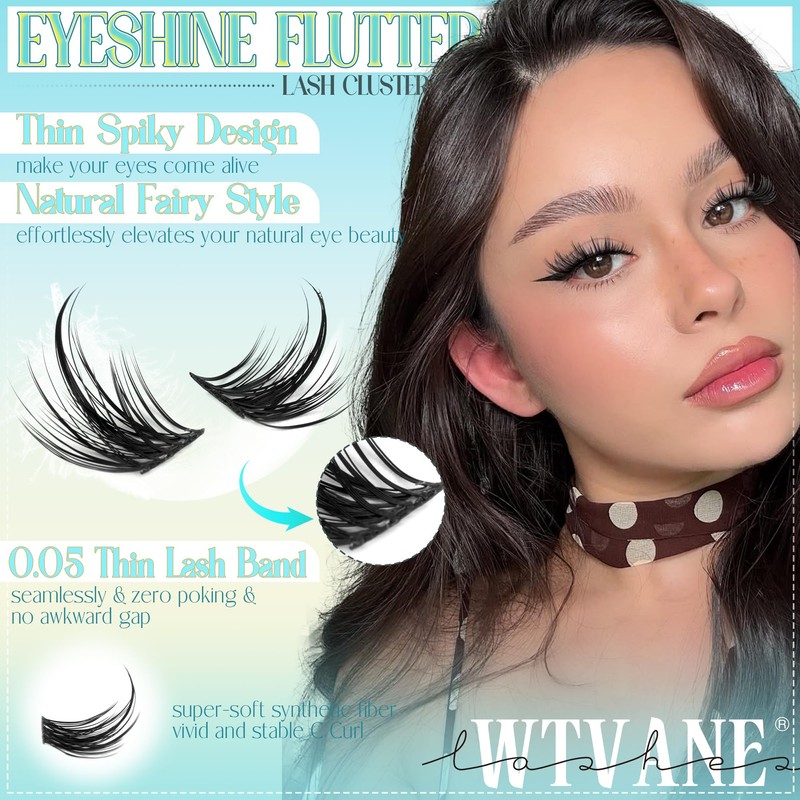 Wtvane Lash Clusters Wispy Eyelash Clusters Manga Lashes Cluster Eyelash Extension Natural Lashes Clusters False Lashes DIY Individual Lash Extension Pestañas Postizas Naturales with Thin Band