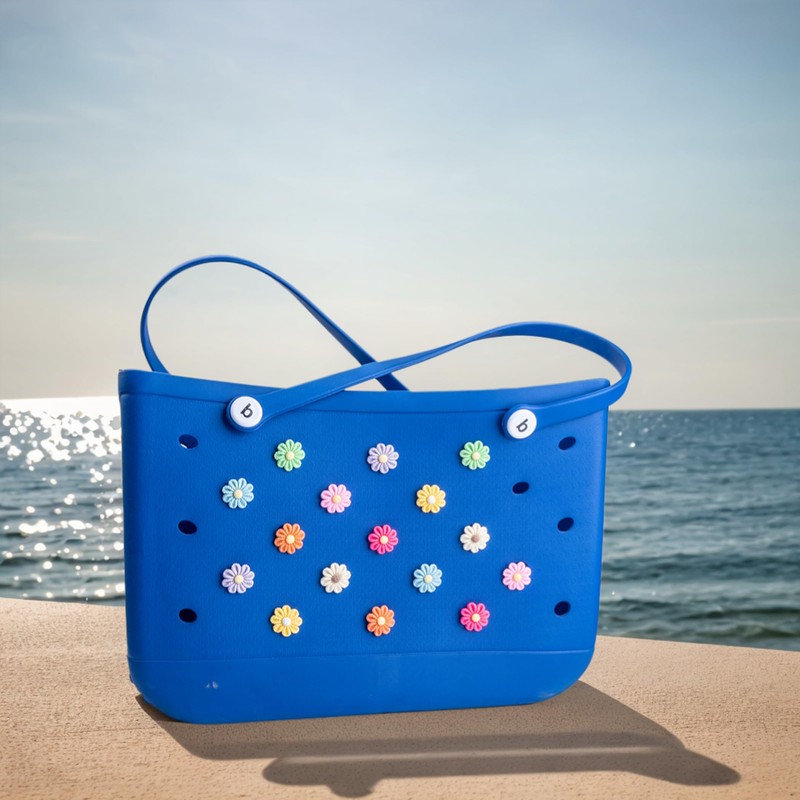 Blossom Your Style with 16 Flower Charms for Your Beach Bag! With an easy snap-on design, customizing your bag is a breeze. Mix and match the pastel blooms to create your own unique look, or switch them out whenever you feel like changing things up.