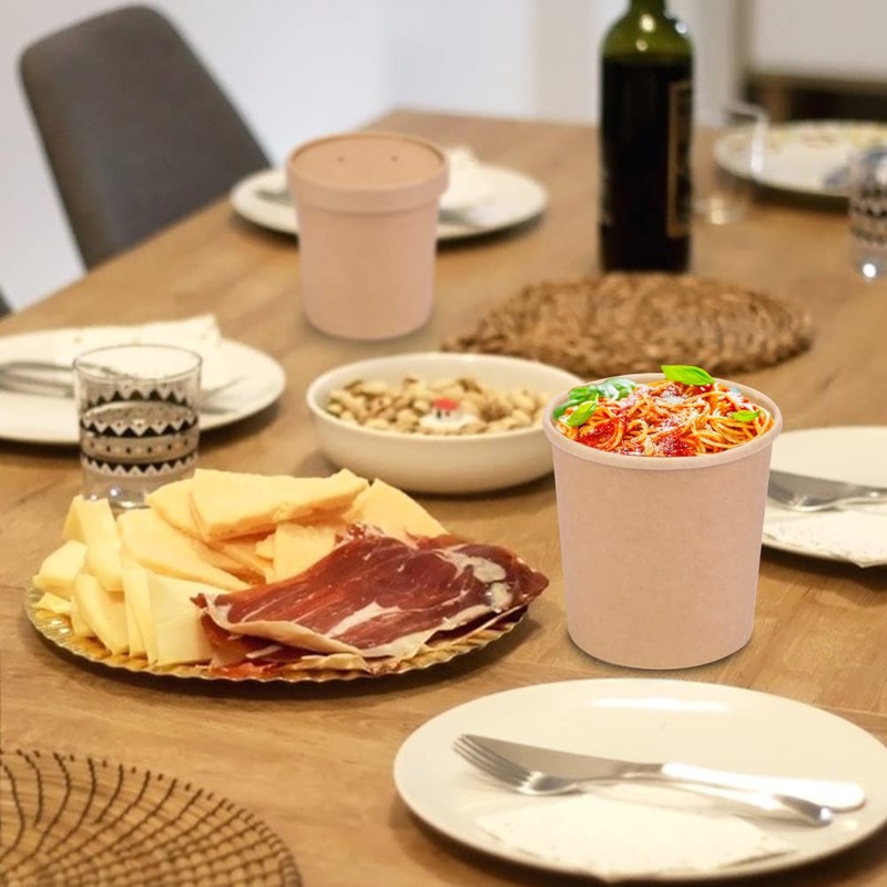 - Works Great: The inner cup and lid combination inside the kraft paper soup container is durable and moisture resistant. Portable and perfect for filling freshly simmered soups, ice-cold yogurt or ice cream, it keeps food warm and gives you and your family the same taste as when it was made.