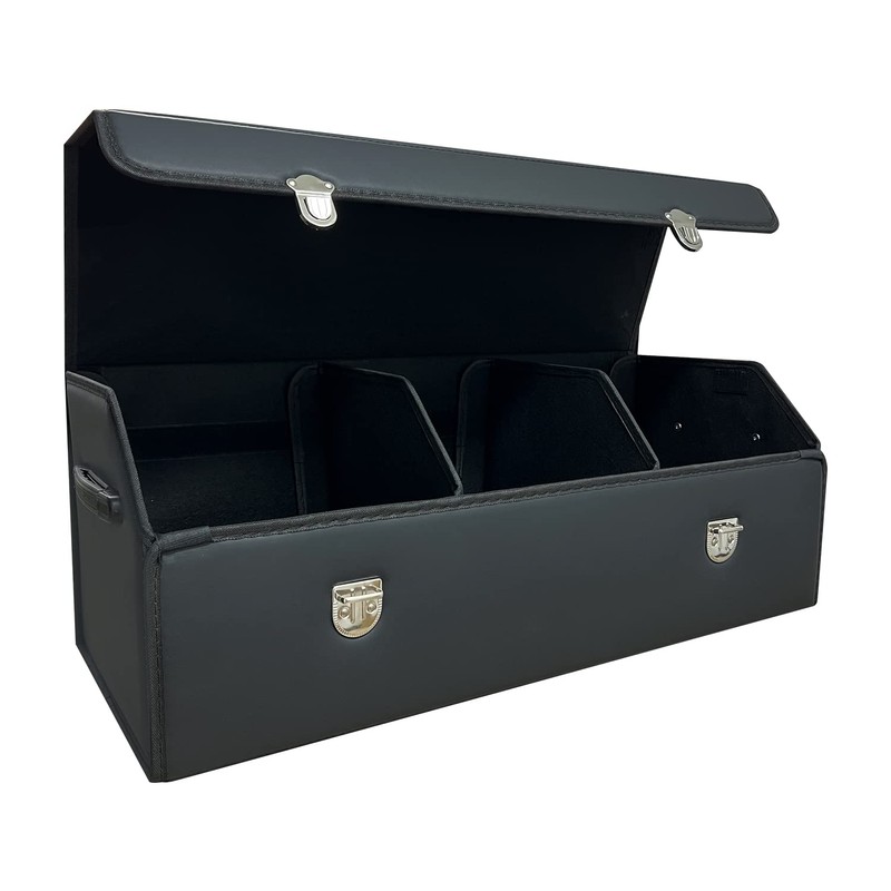 Wuatow Trunk Organizer for Car With Lid,Foldable Trunk Organizer for SUVs & Sedans,Multi-Functional Leather Storage Box- Black - Large