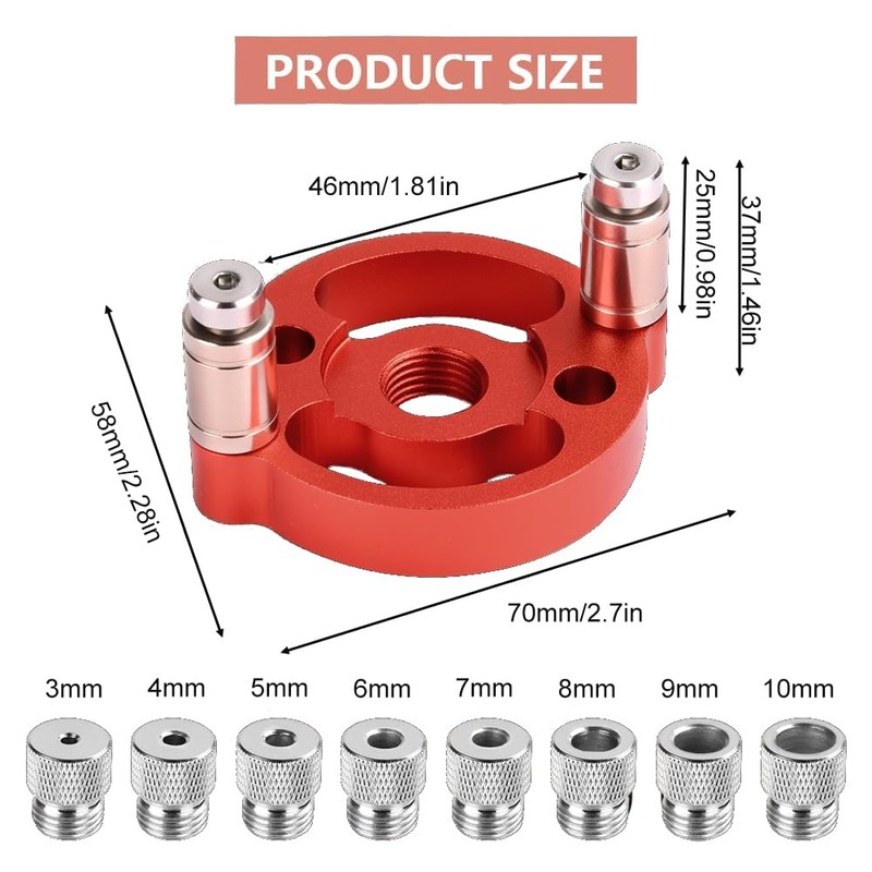 - 【Vielseitiges Bohrbuchsen-Set】 Enthält 8 Buchsen (3mm/0.12", 4mm/0.16", 5mm/0.2", 6mm/0.24", 7mm/0.28", 8mm/0.31", 9mm/0.35", 10mm/0.39") für diverse Bohrbedürfnisse, geeignet für Bretter bis 45mm/1.77" Dicke