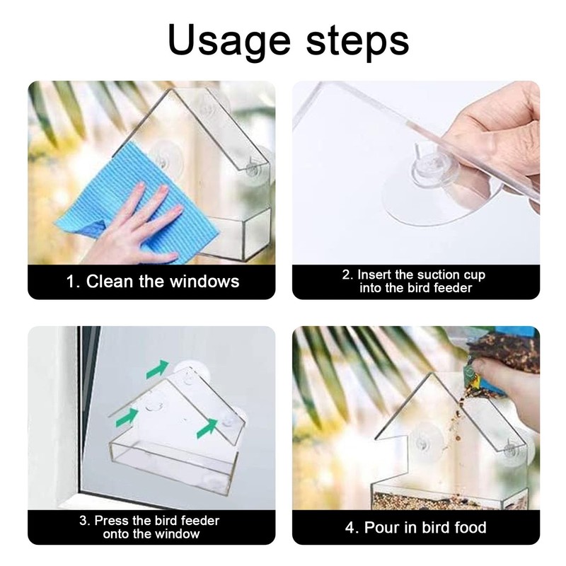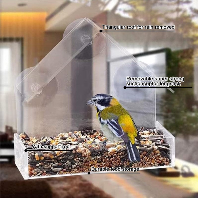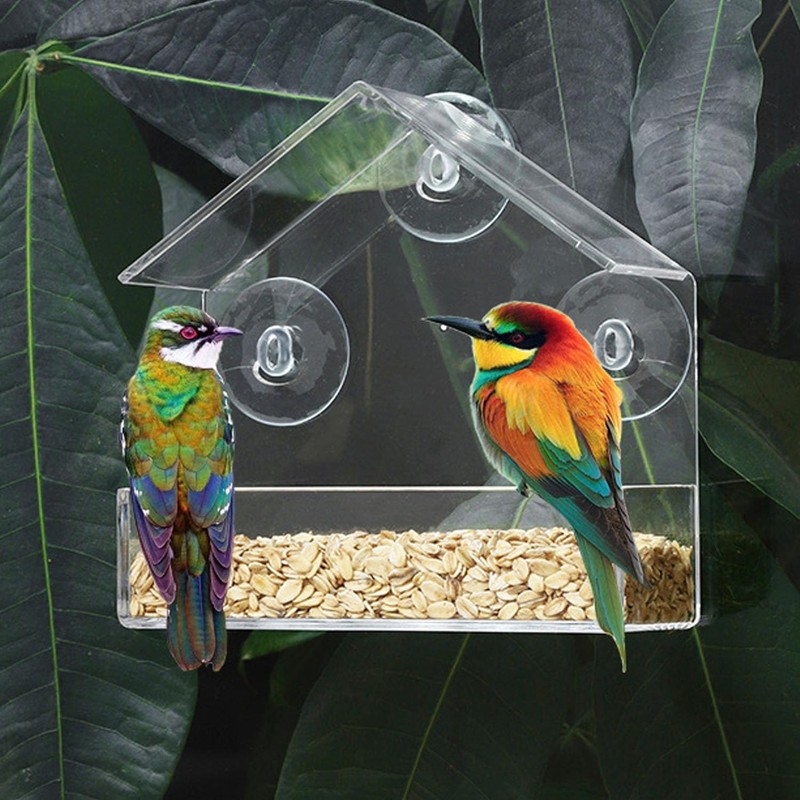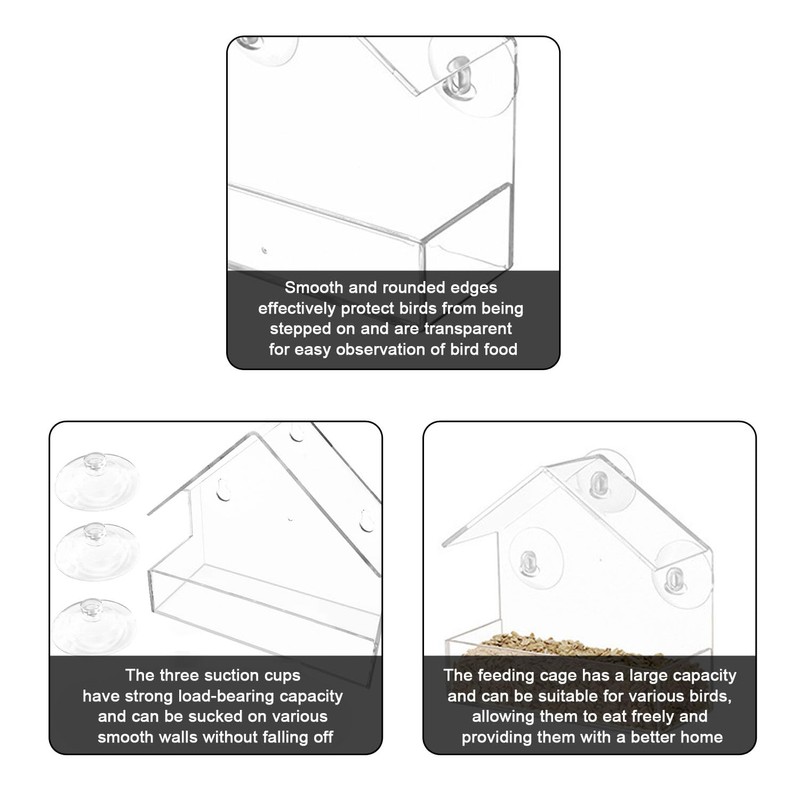 • 【Clear View】 Clear Window Bird Feeder with 4 Strong Suction Cups and Detachable Seed Tray: Easily attach this durable acrylic bird feeder to your window to provide a clear view of wild birds while they enjoy their meal