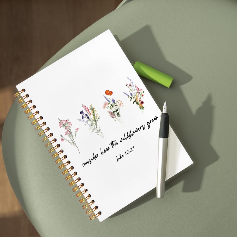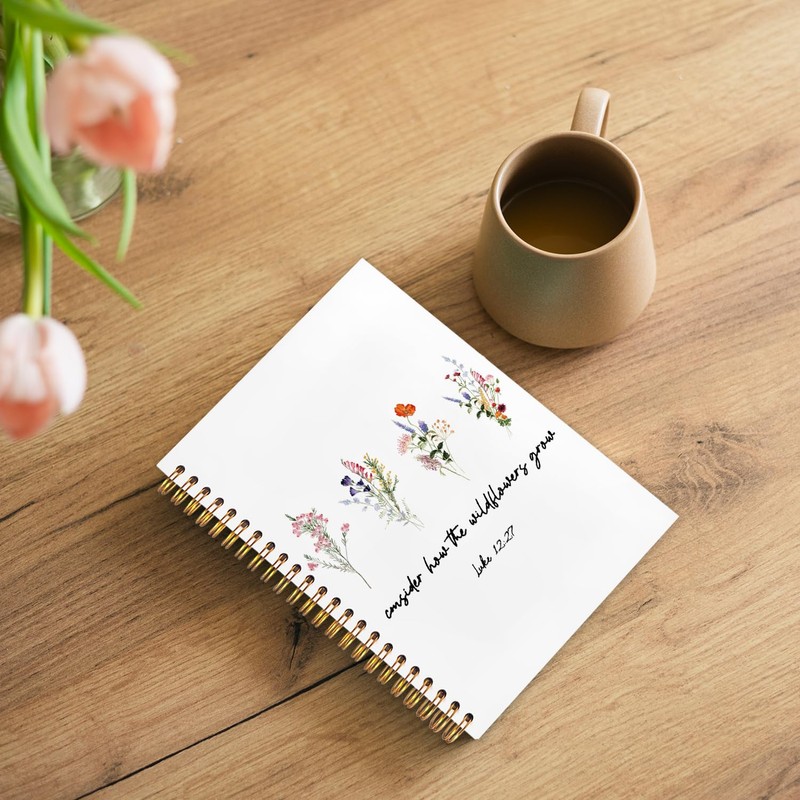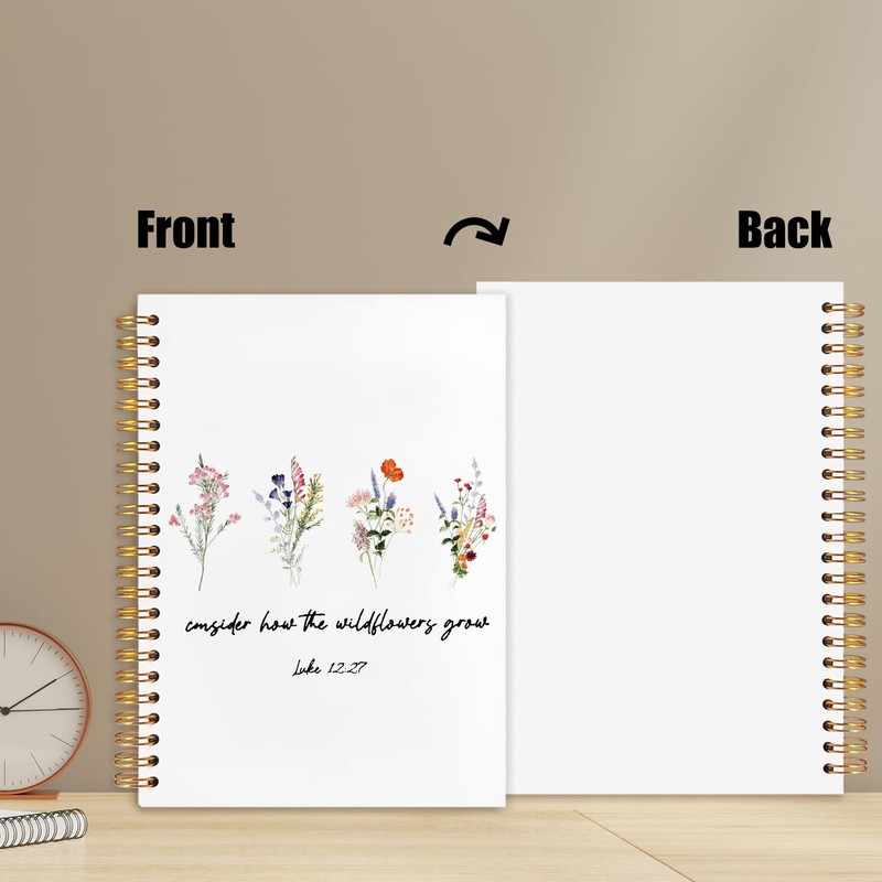 WUCHJ Wildflower Christian Notebook, Luke 12:27 Bible Verse Journal, Religious Scripture Spiral Notebook Journal for Note Taking, Christian Faith Based Gifts for Women, 5.5x8.3 Inch