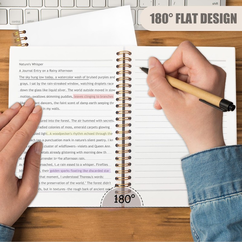 - Smooth Page Turn: Spiral binding allows the notebook to lay flat and turn pages easily, so you can use the entire writing area.