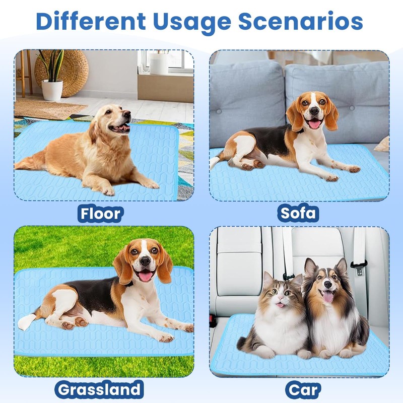 - TWO SIZE OPTIONS FOR ALL PETS - Available in 50x62cm (perfect for small to medium breeds) and 75x100cm (ideal for large dogs), our cooling mats fit most pet beds, crates, and travel carriers. The sky blue color is stylish yet practical, helping to hide minor stains between washes while complementing your home decor.