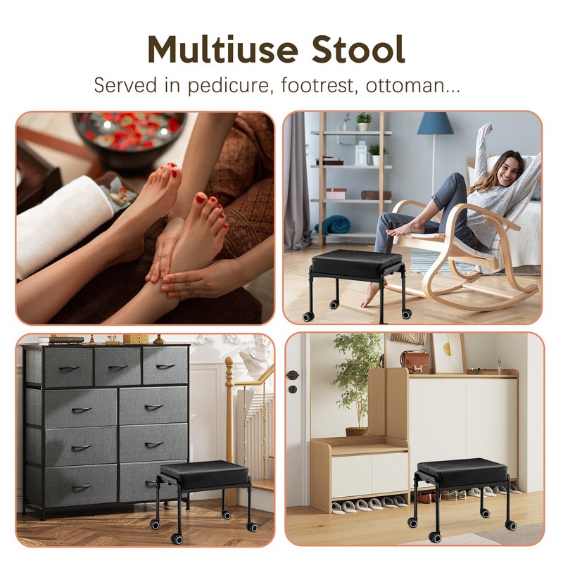WUDOYO Low Stool with Rubber Wheels Wide Seat for Adult Adjustable Height for Kids