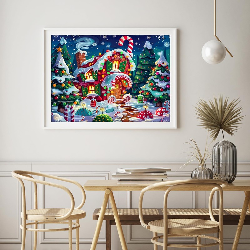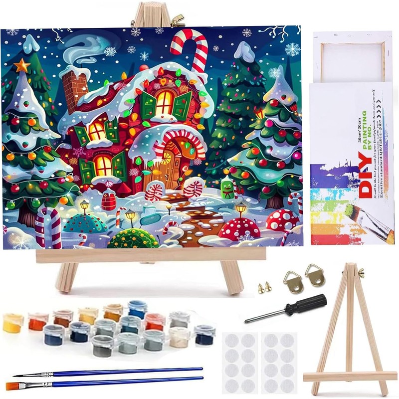 WUDWL Paint by Numbers Kit for Adults Framed Canvas, with Wooden Easel,Paint by Numbers for Kids Ages 8-12, Christmas DIY Acrylic Landscape Oil Painting Arts Crafts, 9.45x11.8inch