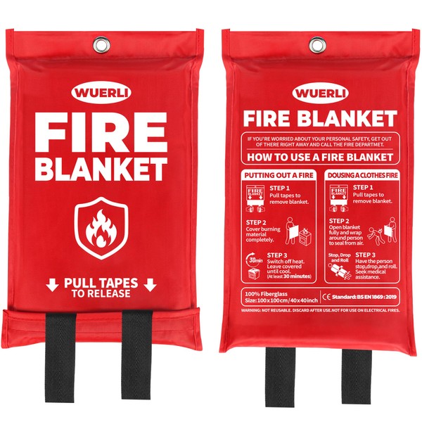 WUERLI Emergency Fire Blanket, Fire Blanket for Home and Kitchen,40" x 40",2 Pack